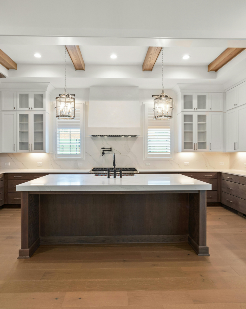 Light wood tones reflect natural light, making rooms feel larger and more open. White cabinets add a crisp contrast without overwhelming the space. Together, they create a fresh and airy feel that works in both modern and traditional homes.